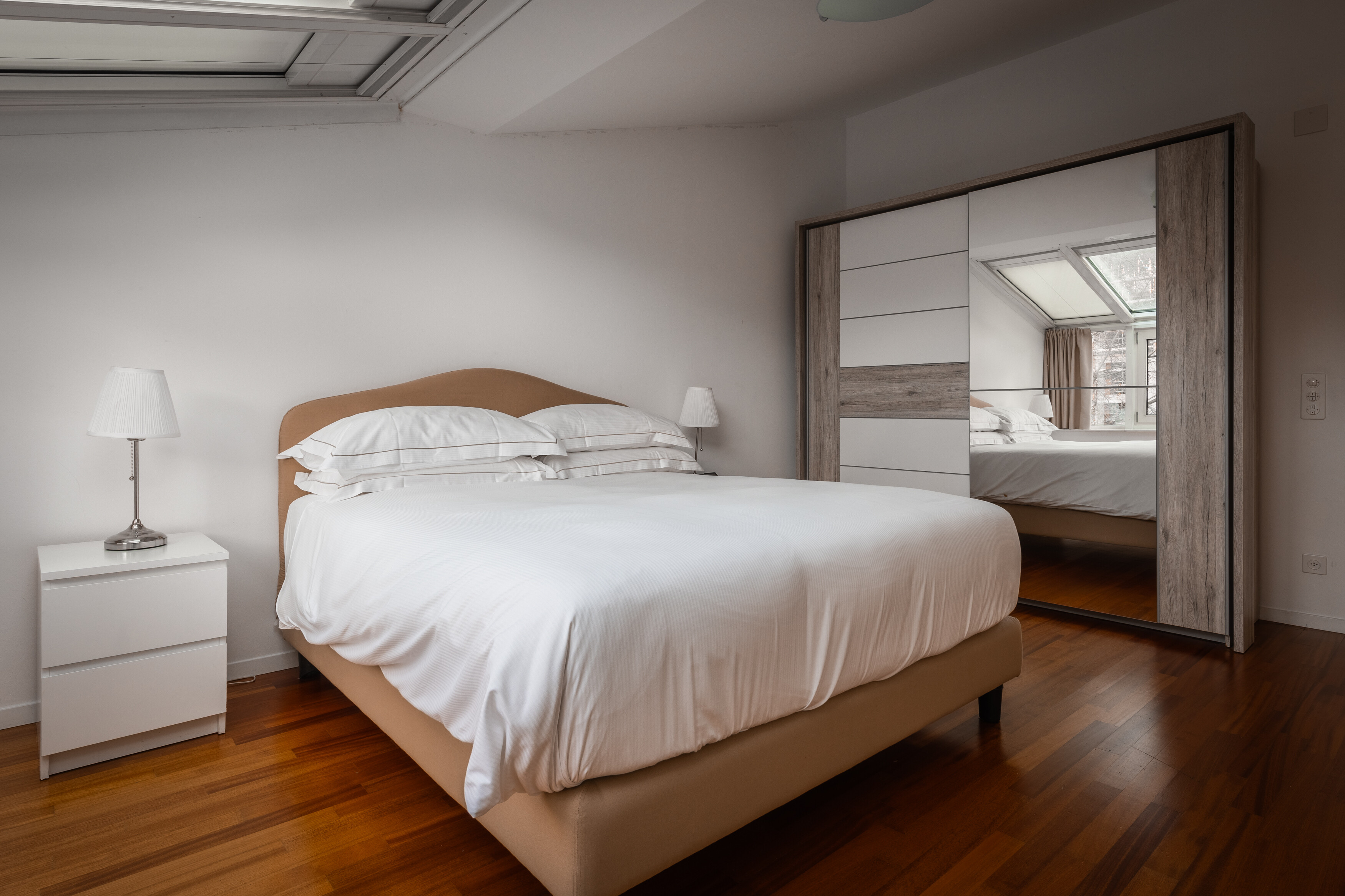 De grandes fenêtres qui garantissent la lumière naturelle, et la terrasse la plus haute de la villa. Parfait si vous souhaitez vous sentir unique et vous offrir un séjour exclusif digne d'une carte postale: 110 m2 juste pour vous font de cet appartement sous les toits le lieu de séjour idéal pour un voyage à vivre chaque instant.